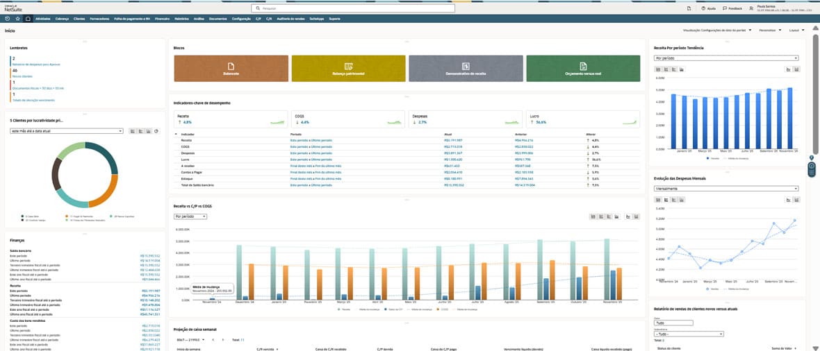As soluções setoriais da NetSuite, impulsionadas por inteligência artificial, oferecem um conjunto robusto de processos e funcionalidades, incluindo KPIs, painéis de controle por função, relatórios e fluxos de trabalho. Você ainda conta com a flexibilidade para personalizar facilmente o NetSuite conforme as necessidades exclusivas do seu negócio.