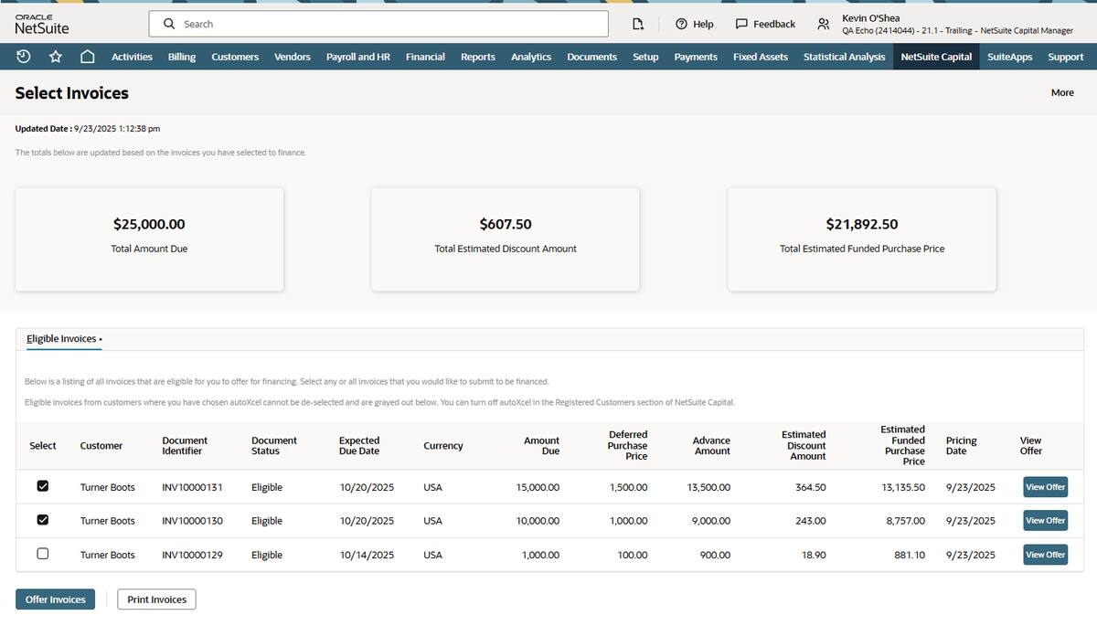 Working capital needs can surge for payroll, inventory, taxes, seasonality, or to seize time-sensitive opportunities. But meanwhile, customers pay on longer terms. Now you can turn eligible invoices into cash right inside NetSuite, with real-time offers and fast funding.