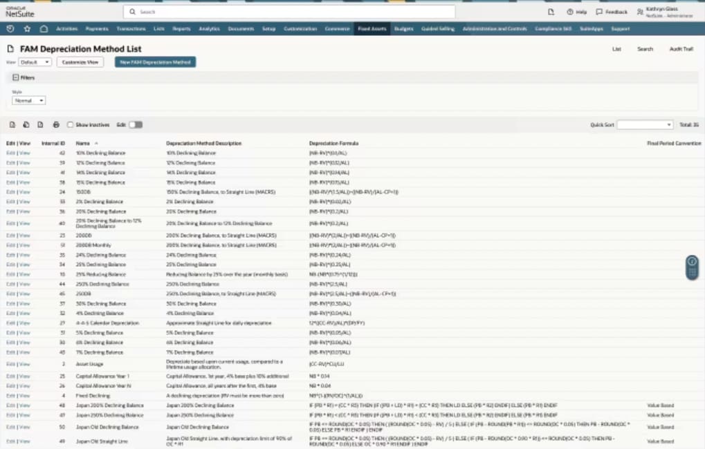 NetSuite’s comprehensive Fixed Assets Management solution helps companies manage the entire asset life cycle from acquisition to disposal—without relying on spreadsheets and time-consuming manual accounting processes. NetSuite software enables businesses to maintain a detailed central register of all capital assets, both tangible and intangible, across multiple locations. You can automatically schedule monthly depreciation calculations, as well as amortization calculations for intangible assets, using standard templates or customized scenarios. Companies can also automate lease payments and maintain compliance with lease accounting standards. NetSuite helps companies identify ghost assets so they can stop paying to insure assets no longer in use. With comprehensive reporting capabilities, companies can quickly analyze costs, depreciation and amortization, lease expenses, and other data for any operational area.