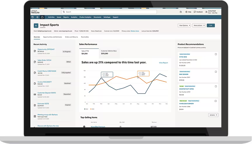 NetSuite addresses common ISP data challenges by integrating its ERP and CRM systems to provide financial management, subscription billing, and operational tools in a single platform. Information about subscriber updates, plan changes, and service appointments automatically flows across departments, eliminating manual entry and minimizing errors. With a unified system, ISPs also gain real-time insights into customer interactions, billing status, and financial performance. This integration optimizes operations, improves service consistency, and supports data-driven decision-making, helping ISPs boost customer satisfaction.