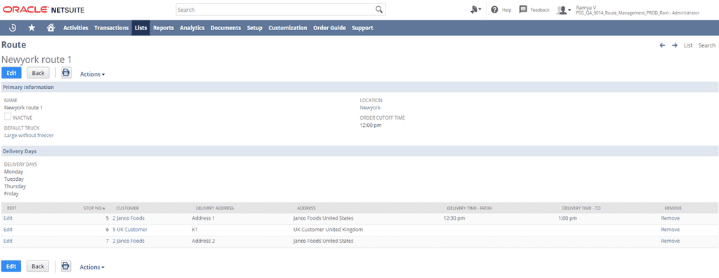 - New route management can automatically assign the route, stop and delivery time of a given sales order based on the customer’s address, alleviating the challenges of assigning delivery routes. Users can override assigned ship dates if a change is required.