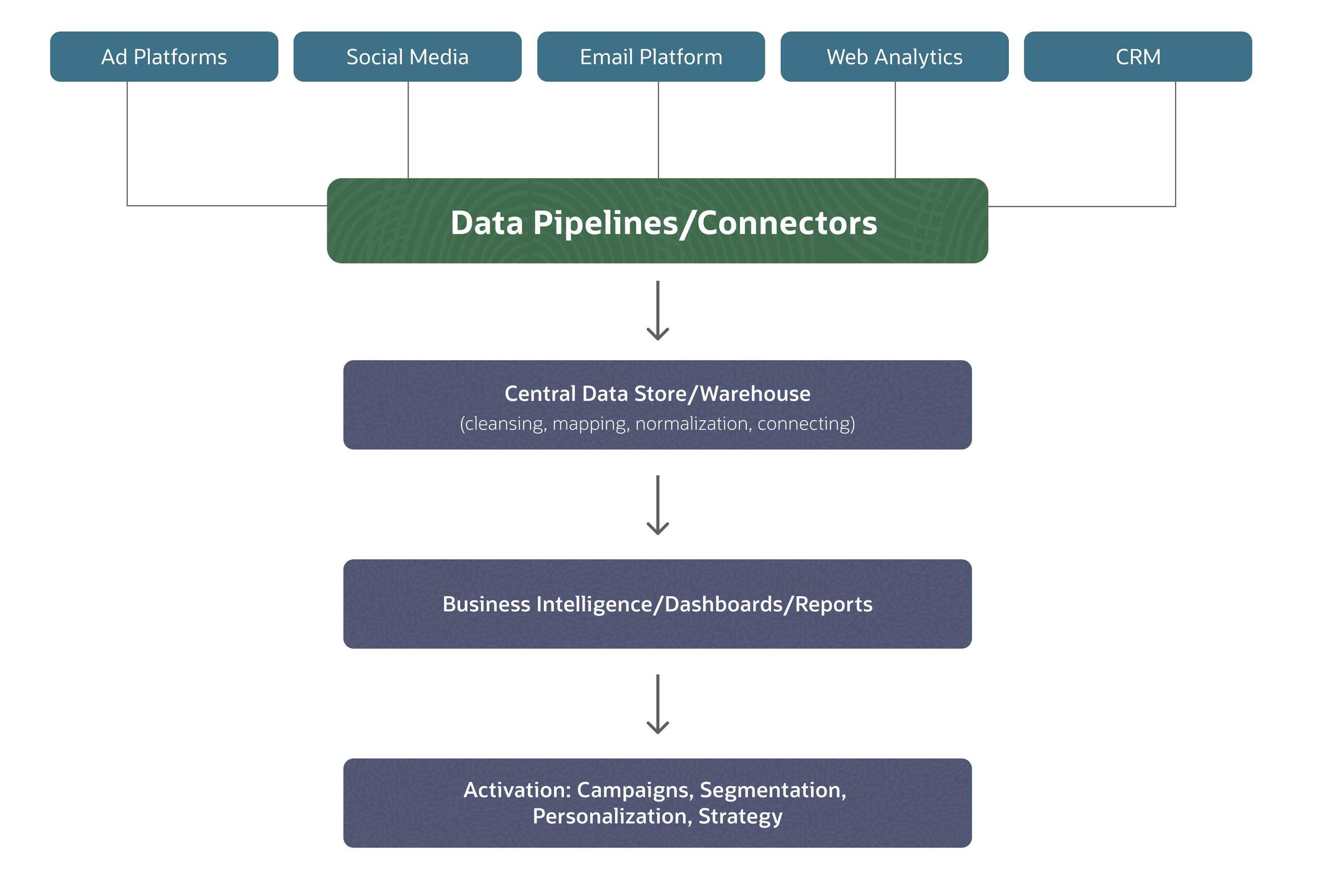 - Marketing data integration connects disparate business systems for analysis and activation.