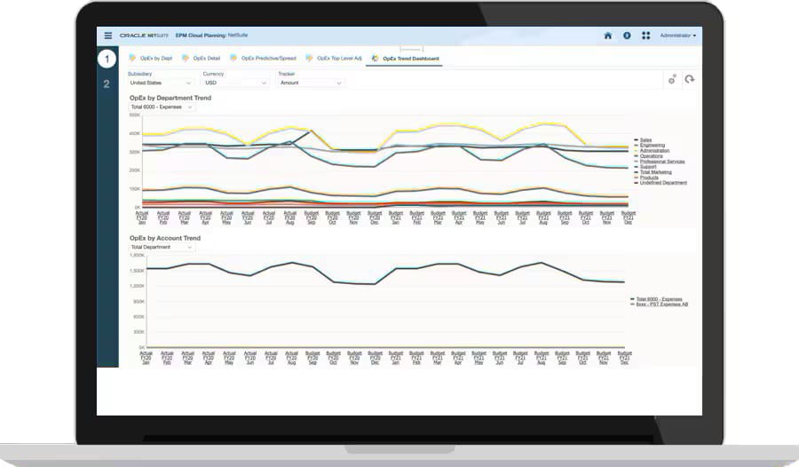 NetSuite’s integrated financial management solution replaces error-prone manual processes with a scalable unified platform that centralizes real-time, accurate financial information in one secure system. With preconfigured and customizable dashboards, users can compare performance against projections in accessible visualizations and financial reports, while automated data processes minimize errors and delays that can undermine projection accuracy and timeliness. NetSuite helps businesses keep their financial projections dynamic and evolving, unlocking flexibility and sustainable growth as real results come in.