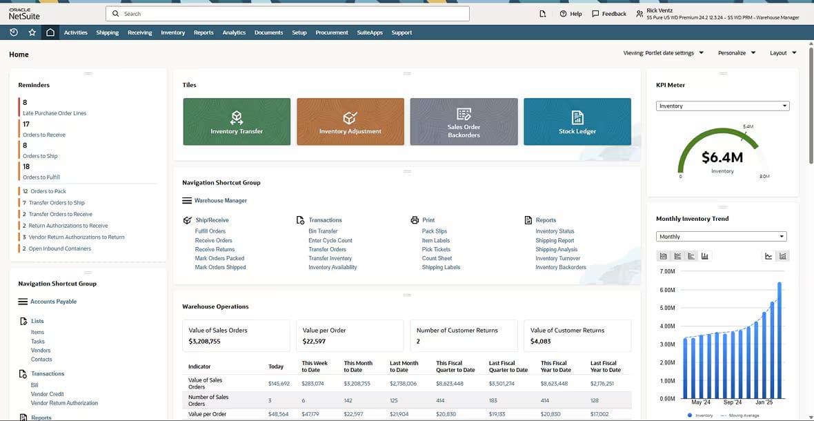 High SKU counts, fast-changing fashion trends, and frequent returns put constant pressure on apparel warehouses. Even with careful planning, it’s easy for out-of-sync inventory and slow picking to create costly bottlenecks. NetSuite Warehouse Management helps apparel companies tackle these issues by unifying core warehouse processes on a single platform. Inventory tracking, mobile barcode scanning, and intelligent putaway limit errors and maintain stock accuracy. Automated pick paths and cycle counting support more efficient fulfillment, and built-in returns management makes sure products move back into available inventory. With greater visibility of warehouse operations, businesses can adapt to seasonal peaks and handle product complexity. Furthermore, by integrating seamlessly with NetSuite Apparel ERP, warehouse data flows smoothly into financials and order management, enhancing overall operational efficiency.